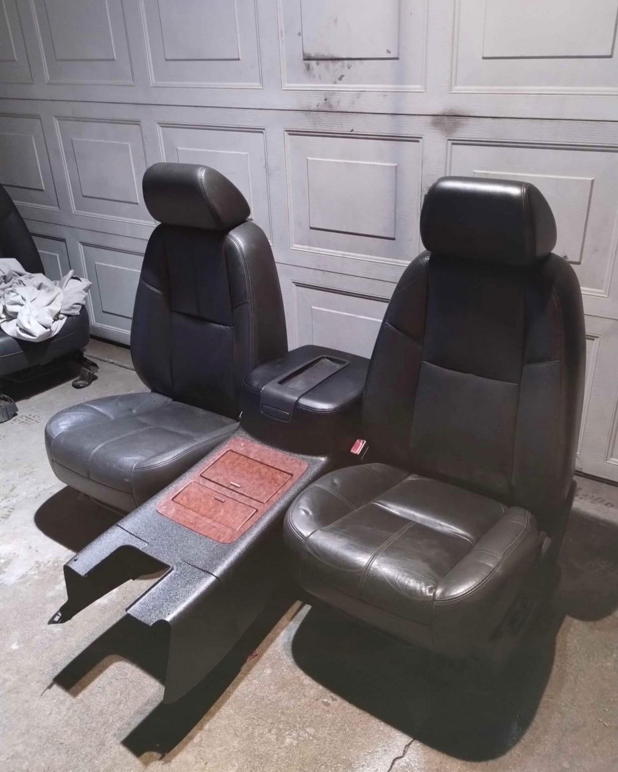“08 GMC Yukon Sierra Denali front seats & console. Black leather seats, center console with Denali wood trim & cup holders. Complete interior upgrade package.”