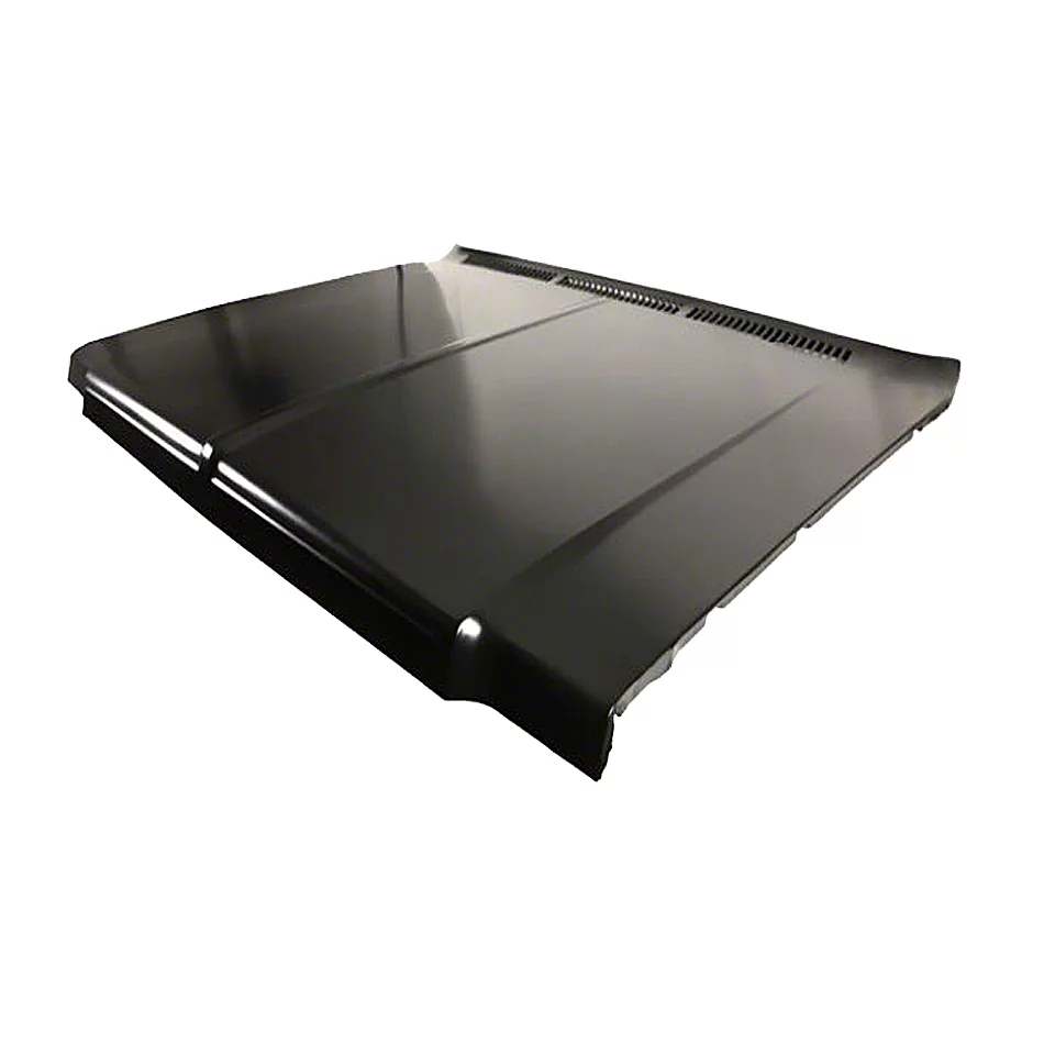 Reproduction hood is direct replacement for the original. Unlike other replacement hoods, this hood has a ridge on the nose and the center spine comes all the way down to the lip.