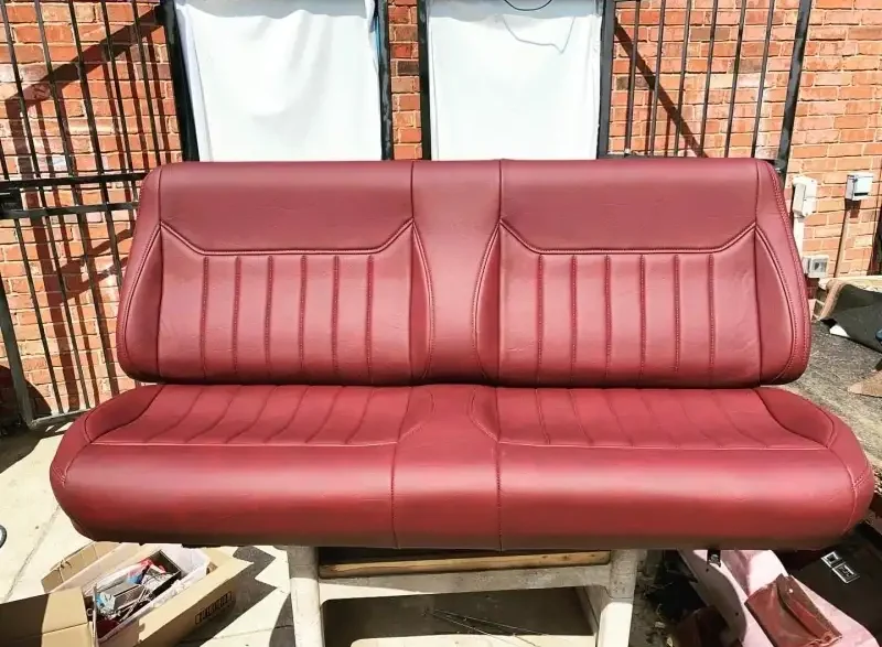 Upgrade your classic ride with the stunning 1985 chevy truck bench seat replacement in vibrant red leather.