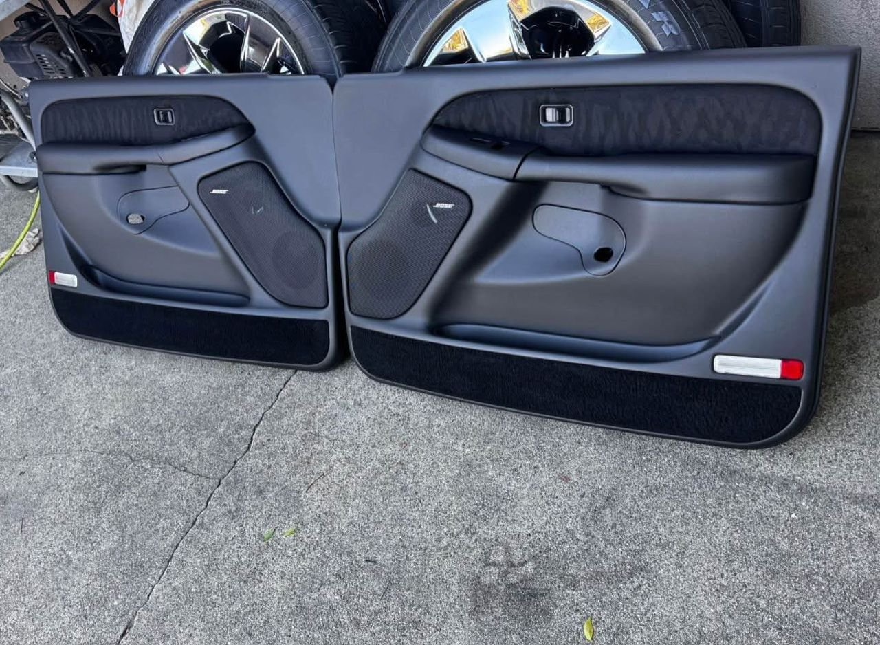Transform your interior with these custom black door panels designed for 1999–2006 Chevy Silverado trucks. Expertly rewrapped in premium black vinyl with luxurious black suede inserts, these panels offer a sleek, modern upgrade that adds depth, texture, and style to your truck’s cabin.