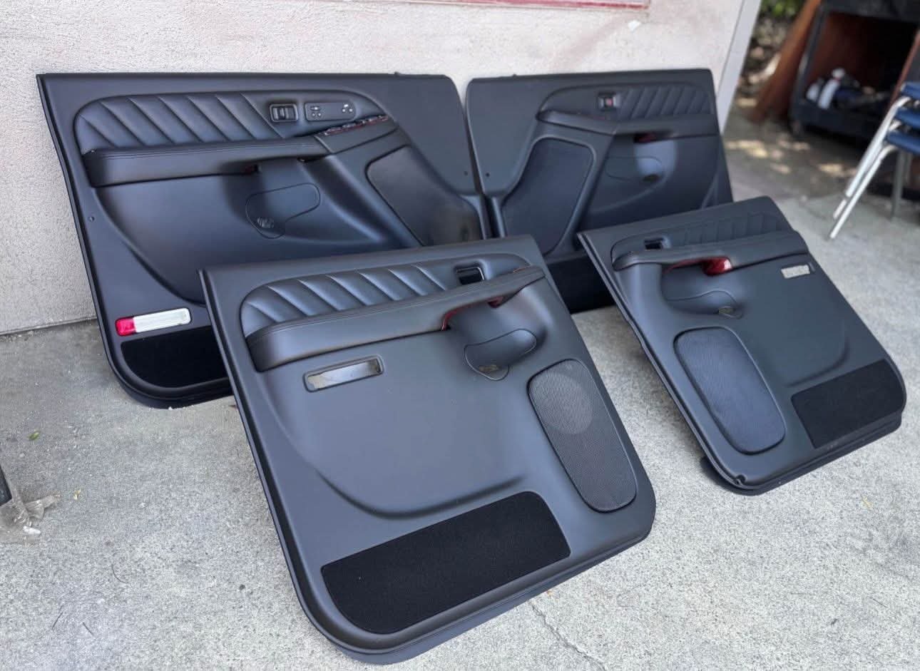 Elevate your truck or SUV interior with this set of custom black door panels originally from a 2006 Cadillac Escalade Platinum Edition. Professionally rewrapped and restyled in sleek black vinyl or leather, these premium panels offer a luxurious and aggressive upgrade for a wide range of GM vehicles.