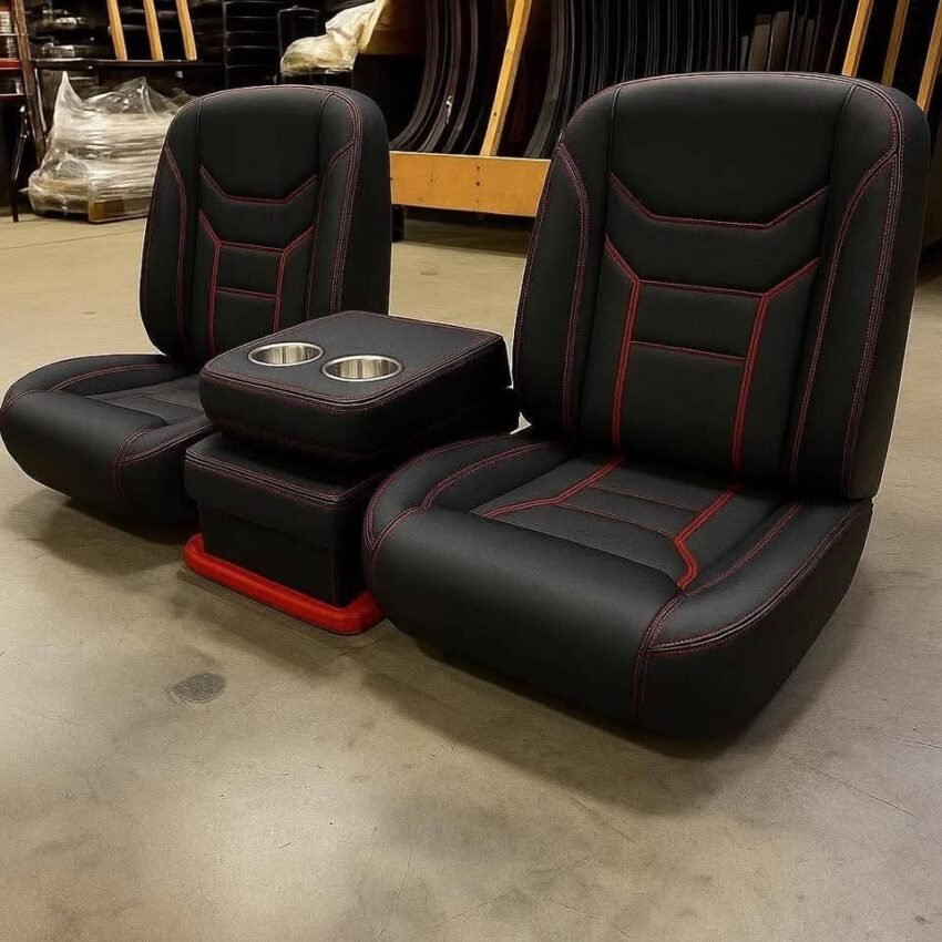 Upgrade your 1988–1998 Chevy C10 with this premium custom seat set, built to deliver modern comfort and aggressive custom style for OBS Chevy trucks. Finished in deep black leather-style upholstery with bold red contrast stitching, these seats offer a sleek, performance-inspired look that instantly transforms your interior. The sculpted center panels and precision-stitched contours create a high-end, show-quality finish while maintaining a clean factory-plus appearance.