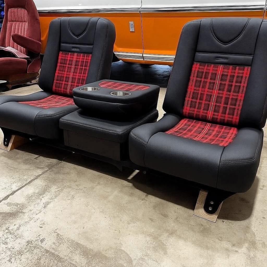 Black/Red Plaited C10 Bucket Seat With Center Console