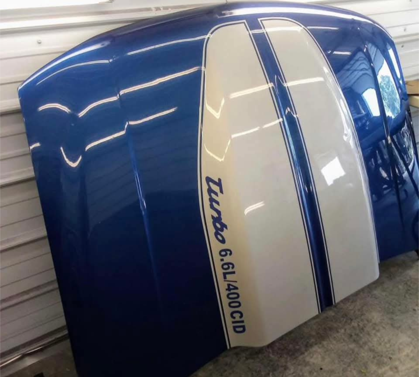 Custom 6.6L/400 CID Turbo Style Cowl Hood – Blue & White – Performance Look