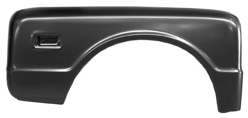 Reproduction rear fender for the 1967-1972 Chevrolet / GMC C/K Stepside Pickup. Stamped from high quality heavy gauge steel. EDP coated. RH = passenger sideReplaces GM part# 3960560Note: Correct for ’68-’72 models. Can be used on ’67 models if side marker hole is filled.Upgrade your classic truck restoration project with the Rear Fender for 68-72 Chevy GMC C/K Stepside Pickup (’67 Requires Modification).Crafted with high-quality materials and precision engineering, the Rear Fender replicates the original fender of your Chevy GMC C/K Stepside Pickup. Its construction ensures a seamless fit and finish, maintaining the authenticity of your vehicle.Constructed with durable steel and finished with a rust-resistant coating, the Rear Fender is built to last and withstand the wear and tear of everyday use. This product is an ideal replacement for rust repair, protecting your truck bed from further damage.The Rear Fender adds a sleek and stylish touch to your classic truck, enhancing its overall appearance and increasing its value. Its direct-fit design means it can be installed without the need for any additional modifications.Whether you’re a truck enthusiast or a restoration expert, the Rear Fender for 68-72 Chevy GMC C/K Stepside Pickup (’67 Requires Modification) is a must-have replacement part. Its high-quality construction and authenticity make it an essential component of any classic truck restoration project.Don’t settle for less than the best when it comes to restoring your classic truck. Choose the Rear Fender for 68-72 Chevy GMC C/K Stepside Pickup (’67 Requires Modification) and take your restoration project to the next level!